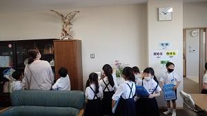 今日の2時間目に、1年生が学校探検をしました。