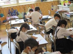 探検の後のまとめの学習では、一生懸命感想や絵をかく姿がありました。
