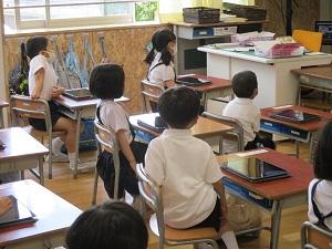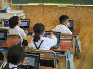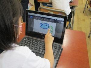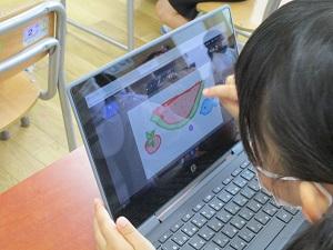 1年生が、一人一台端末タブレットを使い、絵を描きました。
