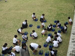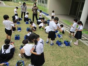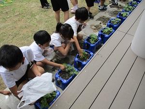 火曜日、1年生がアサガオの間引きを行いました。