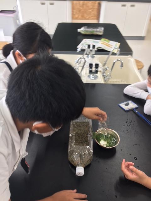5年生の理科「魚のたんじょう」では、メダカのたまごを観察していました。