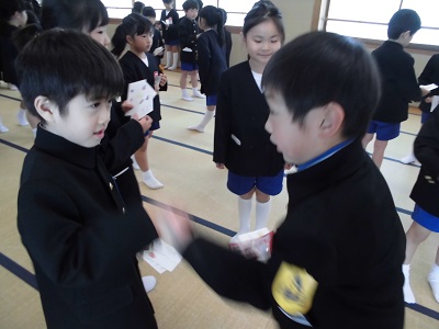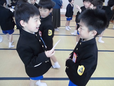 2年生が「わくわく集会」に招待してくれました。月曜日に招待状を届けに来てくれた2年生。1年生は素敵な招待状にわくわくしていました。