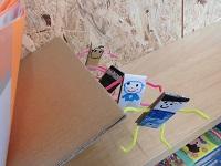 図工ですきまちゃんを作りました。すきまちゃんは、隙間が大好き。みんなの作ったすきまちゃんがいろいろなところに隠れました。