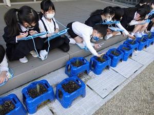 チューリップの芽の観察をしました。11月に植えた球根はみんな芽を出しています。結構伸びてきているもの、やっと芽を出したもの、いろいろいますが、ちゃんと育っています。みんなが2年生になるころには、きれいな花を咲かせるのかな。楽しみです。
