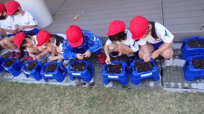 土を入れたり、種をまいたり、一つ一つの作業を丁寧にしていました。
