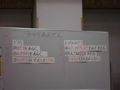 学校近くの交差点の渡り方や、歩道の歩き方を学習しました。