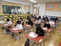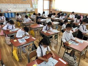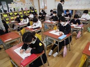 書き初め大会がありました。姿勢や、それぞれの字を書くときの気をつけるポイントを意識しながら、みんな集中して書いていました。12月と比べると上達していて、冬休みの練習の成果を発揮することができたのではないでしょうか。