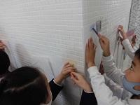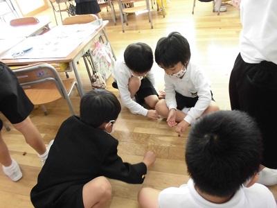 図工の時間に、身の回りのでこぼこを見つけました。粘土を押しつけたり、紙にこすり出したりして形の面白さを見つけていました。普段は何気なく見ているでこぼこにも気づき、「チョコレートみたい!」「水玉や!!」など盛り上がっていました。
