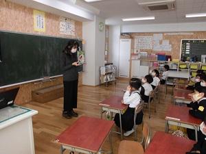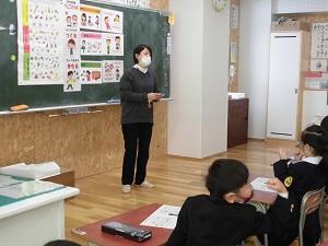 保健の先生から新型コロナウイルス感染予防や手洗い仕方の話を聞きました。