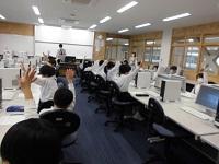 パソコンの使い方を教わりました。電源の付け方、クリック、ダブルクリック、ドラッグなど、ゲームをしながら楽しく学びました。先生の話をしっかり聞きながら操作していました。