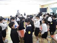 栄養教諭の先生と食べ物の働きについての授業をしました。食べ物は働きによって3つのグループに分かれ、3つのグループの食べ物をバランスよく食べないと元気な体は作られないことを知りました。毎日の給食の材料は3つのグループの食材が全て使われています。苦手な食べ物を一口でも食べられるよう、先生から教わった「魔法の階段」を1段ずつ上って行けるといいですね。