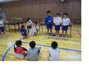 大きな声で説明したり、一緒に遊んであげたりと、どの子も優しいお兄さん、お姉さんぶりを発揮してくれました。「年長さんが笑顔になってくれて嬉しい気持ちになったよ。」「ドキドキしたけど、がんばれたよ。」というふりかえりも見られました。