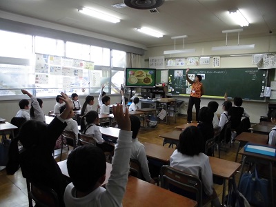学活の時間に、給食の時間を支えてくれている人たちについて学びました。生産者さんや調理員さんの思いや苦労を知り,感謝して食べようと話しました。
