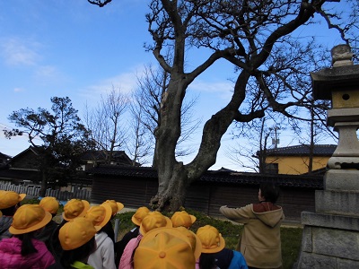 歩いていると、雪つりをしてある木があったり、畑に冬野菜が植えてあったりとたくさんの冬を見つけることができました。除雪車も止まっていて、冬の準備がされているなと思いました。子どもたちが楽しみにしている雪、今年はどれくらい降るのでしょうね。