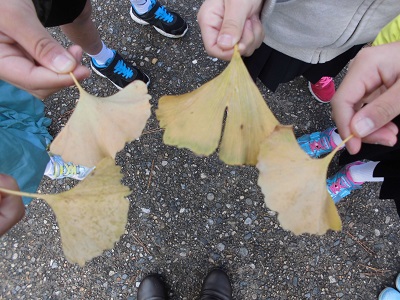 いちょうの葉っぱもたくさん落ちていました。黄色いけど、少し茶色くなっていました。