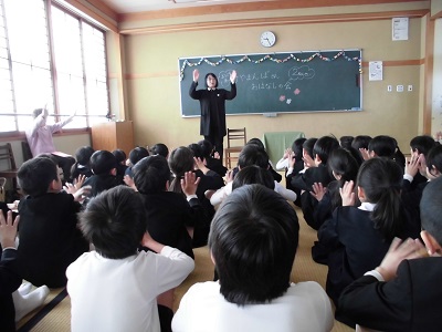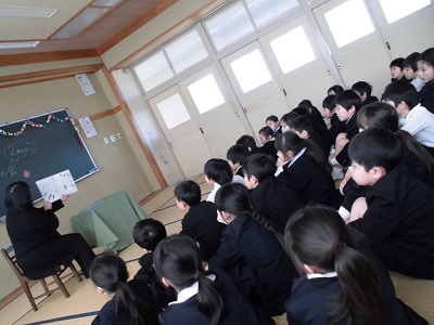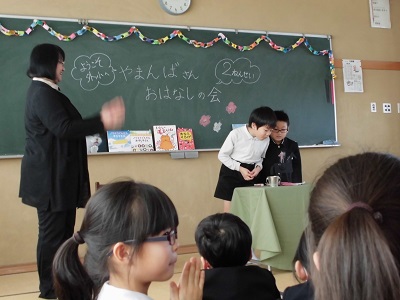今日は、6年生を送る会がありました。2年生は「三まいのおふだ」の劇をしました。