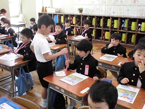 今日は1年生に招待のメダルをわたしてきました。どきどきしながら、1年生が笑顔をみせてくれたことにとってもうれしそうでした。本番まで、あと3日、もう一息がんばりましょう!