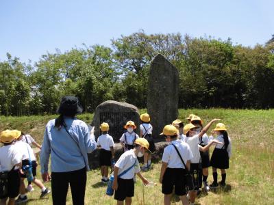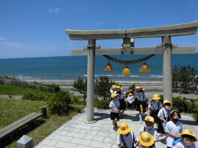 灯台に向けて出発し、道中にある畑や神社などの施設を見て回りました。