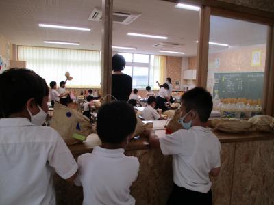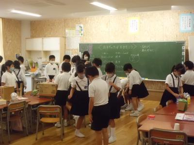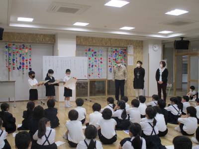 生活科の「野菜を育てよう」の学習で、畑のお世話や、苗の植え方などを教えていただいた先生方に感謝の気持ちを伝える、「かんしゃの会」を開きました。