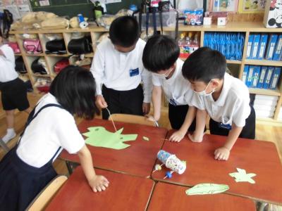 生活科の「つくろう あそぼう くふうしよう」という単元で、身近な材料からおもちゃを作りました。