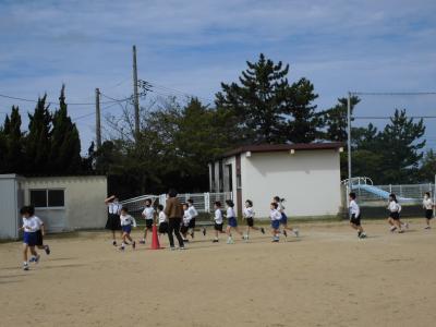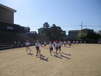 運動場の走る距離は長いですが、子どもたちは自分のめあてに向かって、一生懸命走っていました。