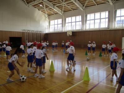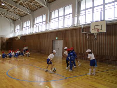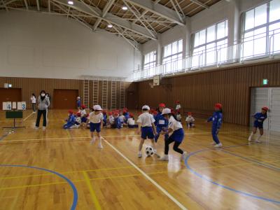 3対3のゲームで対戦しました。パスやドリブル、シュートがとても上手になりました。