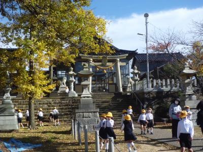 神社では、秋を探しました。落ち葉やまつぼっくりなどたくさんの秋が見つかりました。