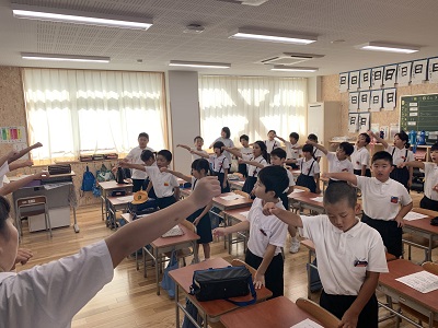 夏休みに入る前の数日間、集中して1学期の学習を確認しました。時にはみんなで体を動かすなどしてリフレッシュしながら最後まで頑張りました。