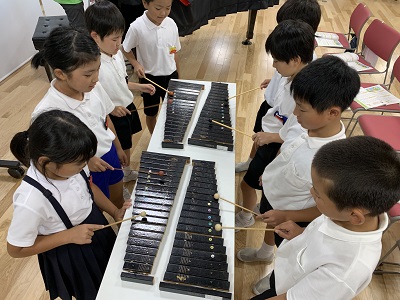 9月17日(木)にリコーダー講習会がありました。リコーダーの講師の先生をお招きし、リコーダーの持ち方や指の使い方など、基本的なことを学びました。サミングやタンギングなど、上手に演奏するテクニックを教わったり、舌を上手く使う練習をしたりしましたね。最後には、ソプラノリコーダー以外のさまざまな大きさのリコーダーを見たり、それらを使った素敵な演奏を聴いたりしました。今回学んだことをこれからの音楽の授業でいかしていきましょう。
