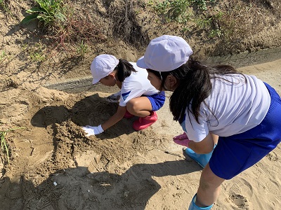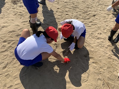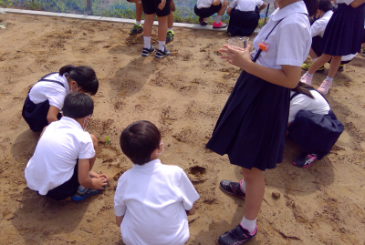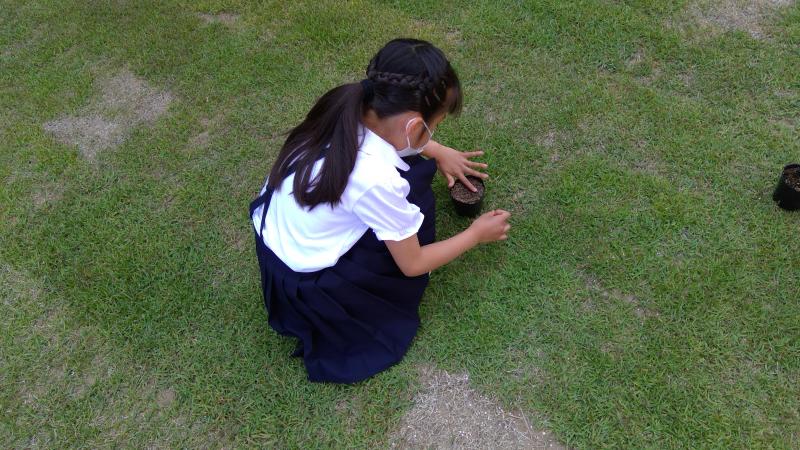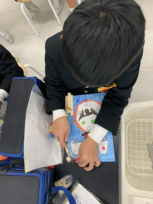 理科の授業にて、モンシロチョウの飼育、観察を行ないました。たまご→よう虫→さなぎ→成虫まで、教室で育っていく様子を毎日見てきましたね。最後は、外でモンシロチョウにお別れをしました。
