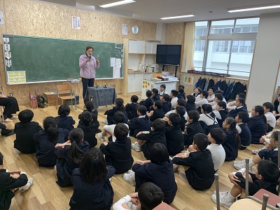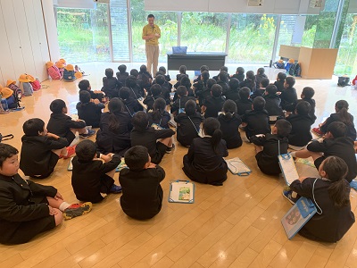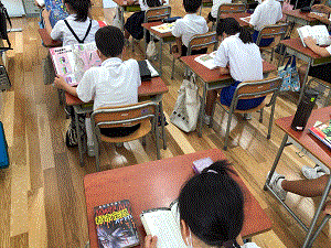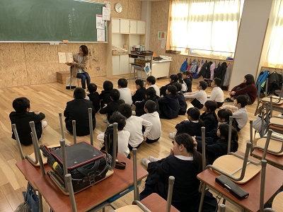 朝の時間に図書ボランティアさんの読み聞かせがありました。