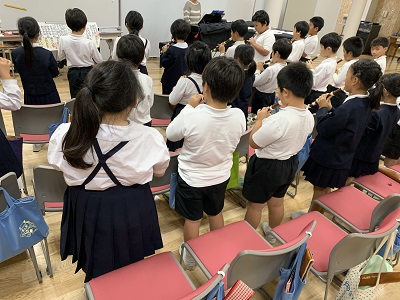 いよいよ夏休みです。今日は終業式があり、あいさつなど「4つの『あ』」のお話や夏休みを安全に過ごすためのお話を聞いたり、原爆の歌を聴き平和について考えたりしました。
