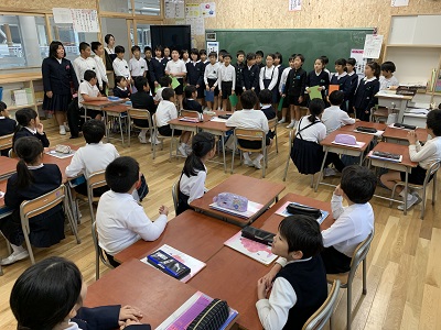 10月になりました。放送による全校集会では、校長先生より「あいさつ」のお話を聞きました。あいさつは何のためにするかを考え、自分の言葉で「まとめ」をしてみましたね。また、生活については「時間を守って行動する」ことについてのお話を聞きました。あいさつも、時間を守ることも、それをなぜするのか、どんなよさがあるかを考えることで、よりしっかりと取り組んでいけるようになりますね。今日考えたことが、今後の学校生活にどう活かされていくのか楽しみです。