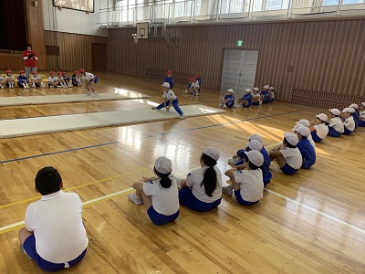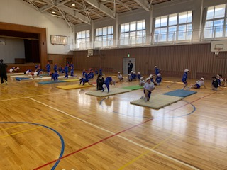 クラブパレットさんに来ていただきマット運動の指導をしていただきました。