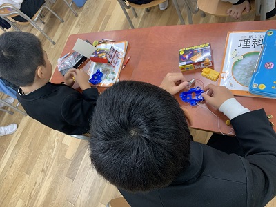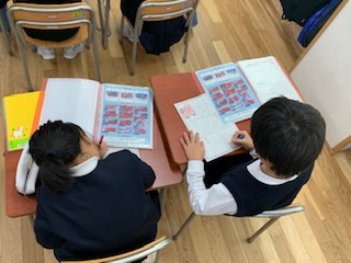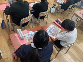 6年生に教えてもらいながら一生懸命取り組んでいます。