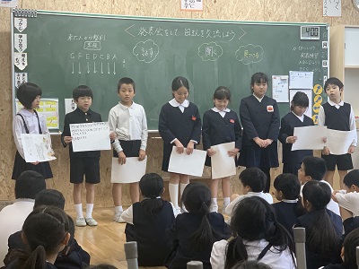 始業式では、校長先生からよりレベルアップした「4つのあ」 についての話やめあての話を聞きましたね。その他にも、安全に学校生活を送るための生活目標について考えました。具体的なめあてをしっかりと決めて、3年生としてより成長できるよう頑張っていきましょう。