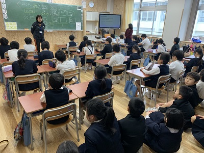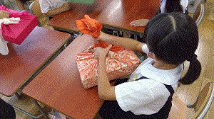 子ども達が書いたふり返りを見ると、「ふろしきのすごさがわかった」、「ふろしきがあれば何でもつつめると思った」、「かわいいがらが多かった」、「かんたんだったので家でもやってみたい」、「ゲストティーチャーの方のおかげでかんたんにわかった」などと書いていました。最初は難しそうなイメージを持っていた子達も、ゲストティーチャーの方々のおかげで簡単に包むことができ、その利便性や味わいを感じることができました。日本の伝統・文化にふれる貴重な時間を過ごすことができましたね。