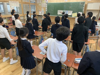 いよいよ6月のスタートです!1限目の集会は、体育館で行なうのではなく、教室内で放送でお話を聞きました。あらためて挨拶や整頓など、学校生活で意識したいことを確認しましたね。