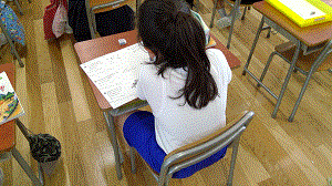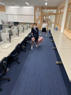 運動会練習の合間には日陰やエアコンの効いた教室で休憩しています。