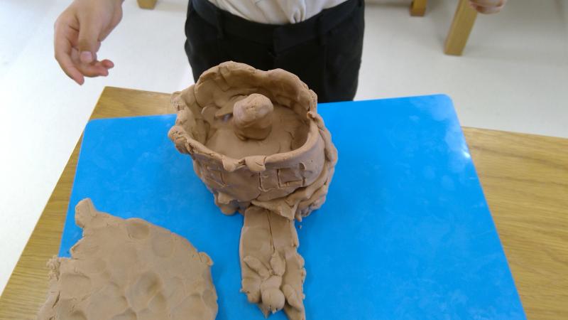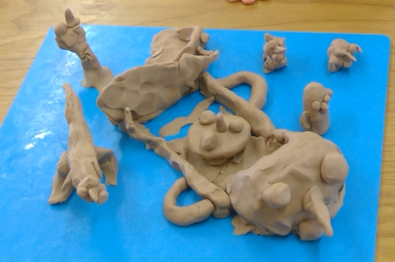 図工の時間に粘土を使って作品を作りました。「かきべら」を使って粘土をかき出したりけずったり、糸をつかって粘土を切ったりしながら、くっつけて作品を作りました。それぞれの個性が工夫して表現されていて素敵でした。