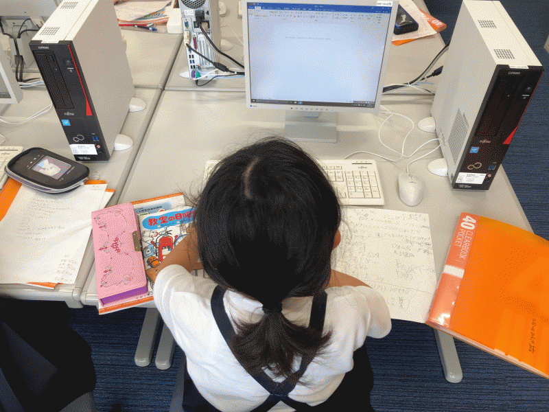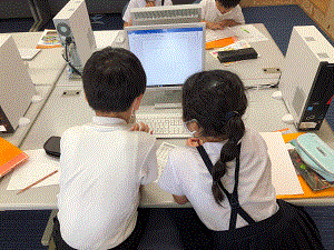 総合の授業をはじめ、情報を得る際などにパソコンを活用できるよう、使い方の学習を行いました。マウスやキーボード、カーソルといった基本的な語句について学習したり、実際に起動してマウスを使う練習をしたりしましたね。今後は、ローマ字をマスターして、自分で入力ができるようになれたらいいですね!