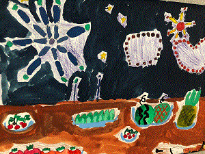 いよいよ8月になり、よりいっそう暑い日が続くようになりました。7月の図工の授業では、「ぼく・わたしの夏」というテーマで絵を描きましたね。夏をイメージする出来事やものを思い浮かべ、絵に表現しました。プールやすいかわり、夏祭りやカブトムシ・・・。それぞれの思う様々な夏が個性豊かに表現されていました。