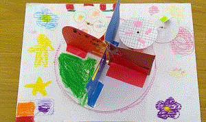 図工の授業で「くるくるランド」、「クリスタルアニマル」の作品を作りました。