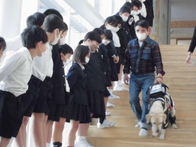 3人1組となり、アイマスクを付けている児童の手を引いて、工夫しながら誘導する姿がありました。