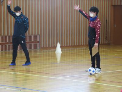 その後、体育館でアイマスクをつけたまま、ブラインドサッカー用のボールでシュートを打つなど、