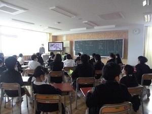 栄養士の小鹿山先生をまねいて、食育学習を行いました。昨年度は、お菓子の箱を用いて糖質の学習を行いましたが、今年度は給食センターで給食がどのように作られているのかお話を聞きました。