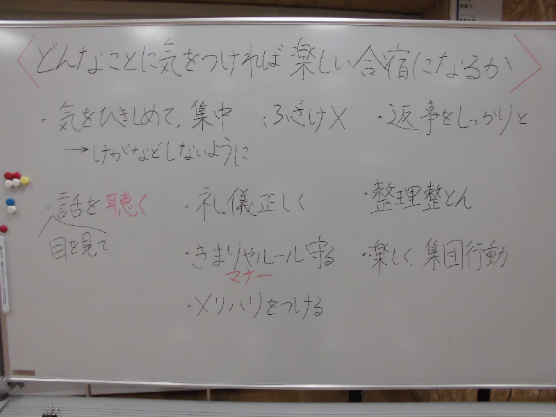 すてきな意見がたくさん出て、子どもたちの、合宿へのやる気が伝わってきました。
