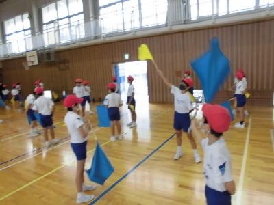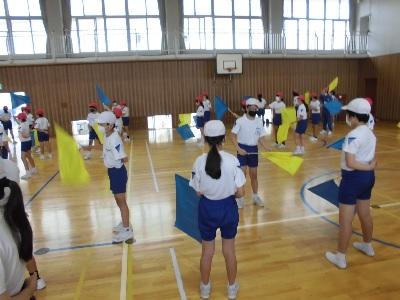今年度の、高学年による表現運動もフラッグを使ったものになります。
