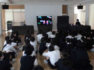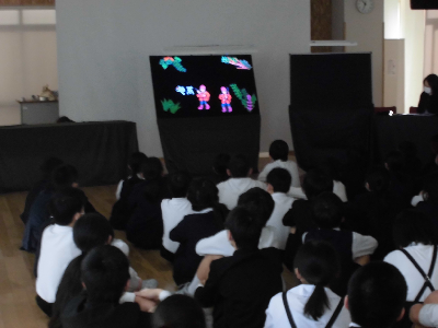 今日は、図書ボランティアさんによるブラックシアタ―がありました。
