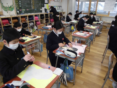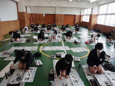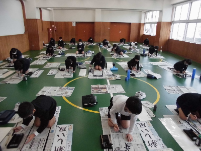 1月7日、三学期初日の書き初め大会に向けて、各クラス書き初め練習を頑張っています。